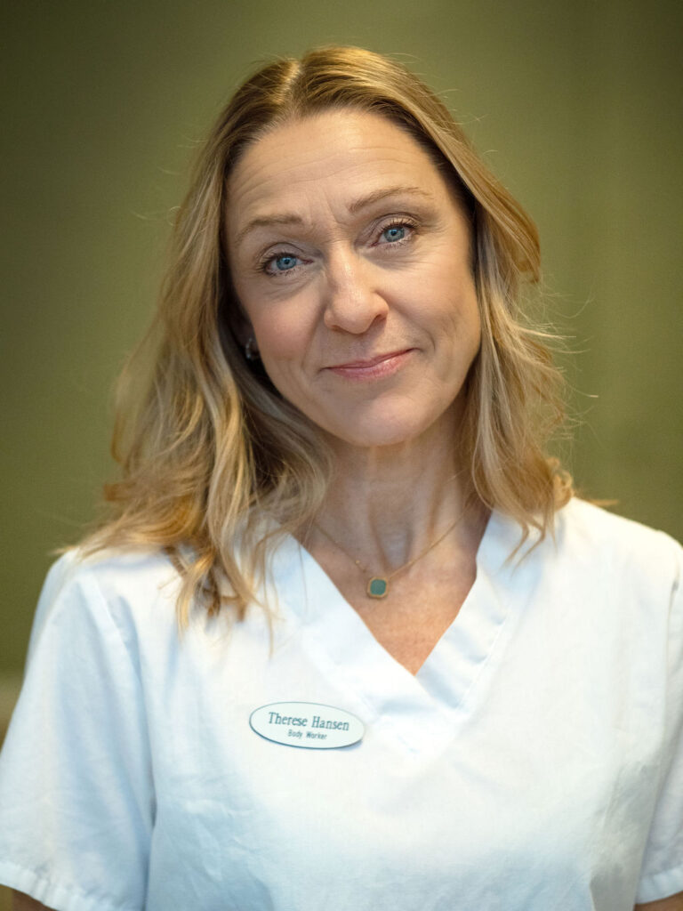 Som nyutdannet massasjeterapeut i 2002 grunnla Therese sin egen praksis, som i dag er Bergen Body Work. Hun har en lidenskap på å studere mennesket funksjon og struktur og er pr 2023 fulltids student ved Høyskolen Kristiania i Oslo, der hun tar bachelor utdanning i osteopati. Hun er opptatt av å hjelpe mennesker til å forstå sin egen kropp og å gi individuelle verktøy som kan støtte opp å bidra til en lettere funksjonell hverdag. Hun tar imot kunder både i Bergen og i Oslo. Tilgjengelighet i de ulike byene varierer i forhold til studieplan. Du er velkommen til å kontakte pr mail om du ønsker informasjon eller avtale time.
